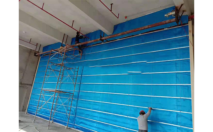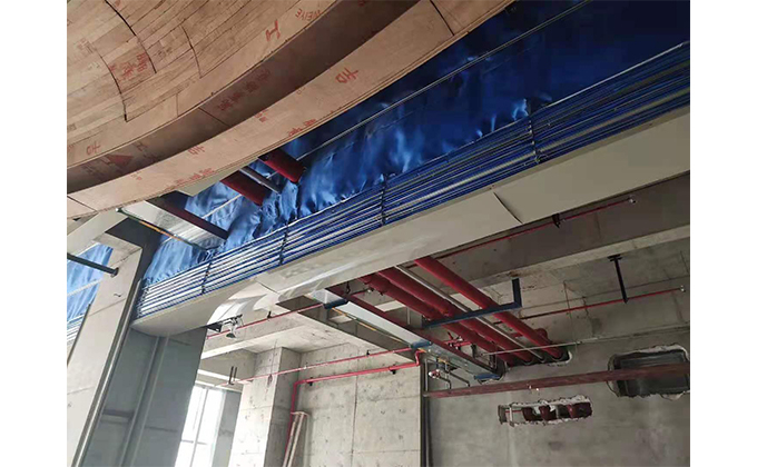 擋煙垂簾垂壁根據(jù)設(shè)計(jì)要求和現(xiàn)場實(shí)際情況采取如下施工順序:首先,搭設(shè)腳手架一放線一打眼--上脹栓一焊骨架。第二,吊件一安裝骨架…